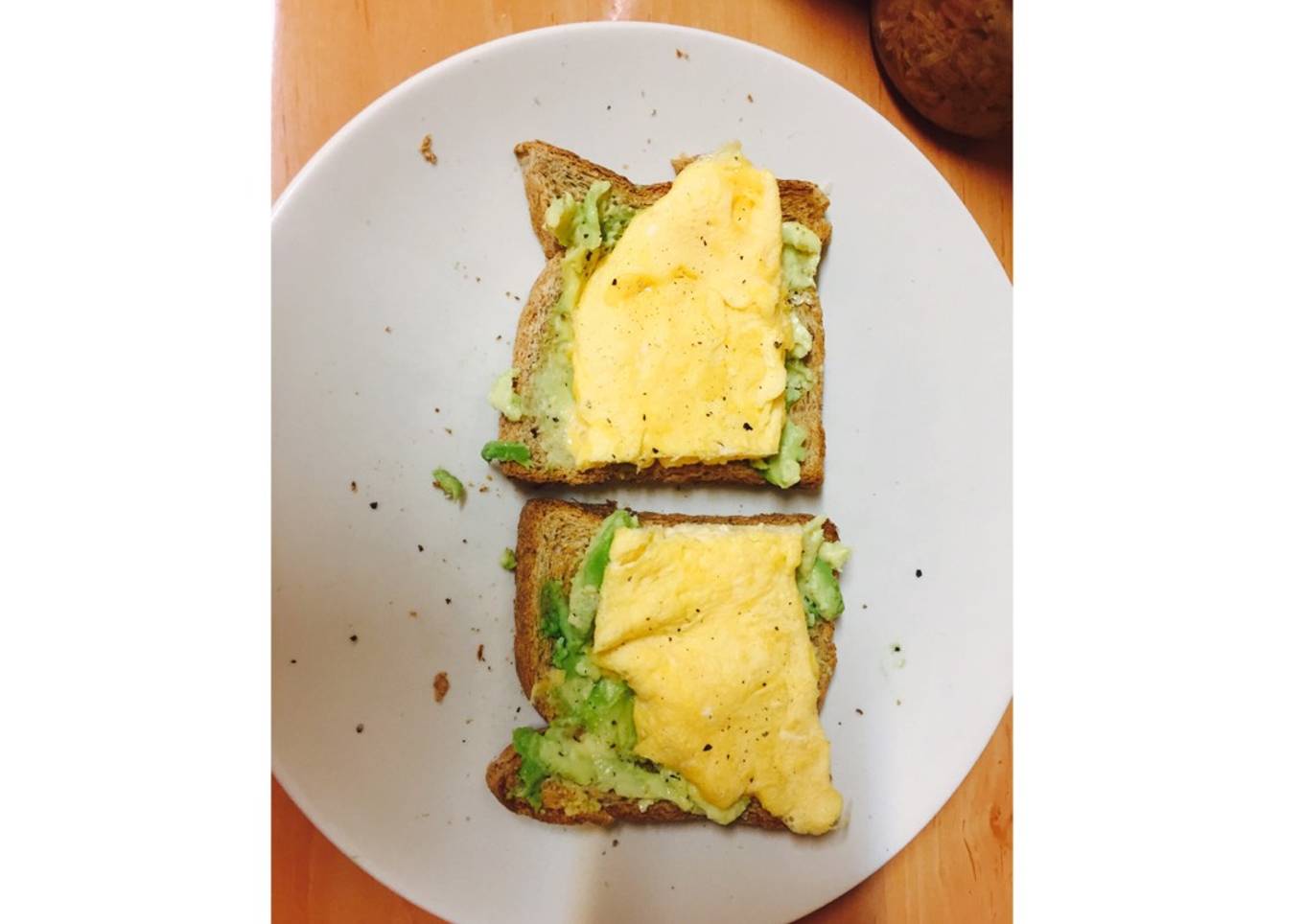 - Cortar el aguacate y untar medio aguacate en cada rebanada de pan.