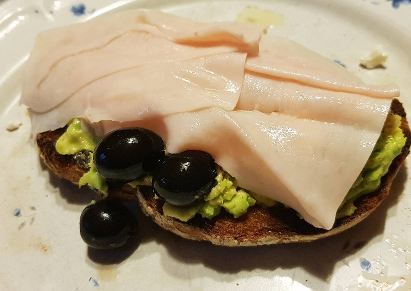 Tostada con Aguacate, Queso de Cabra y Pavo