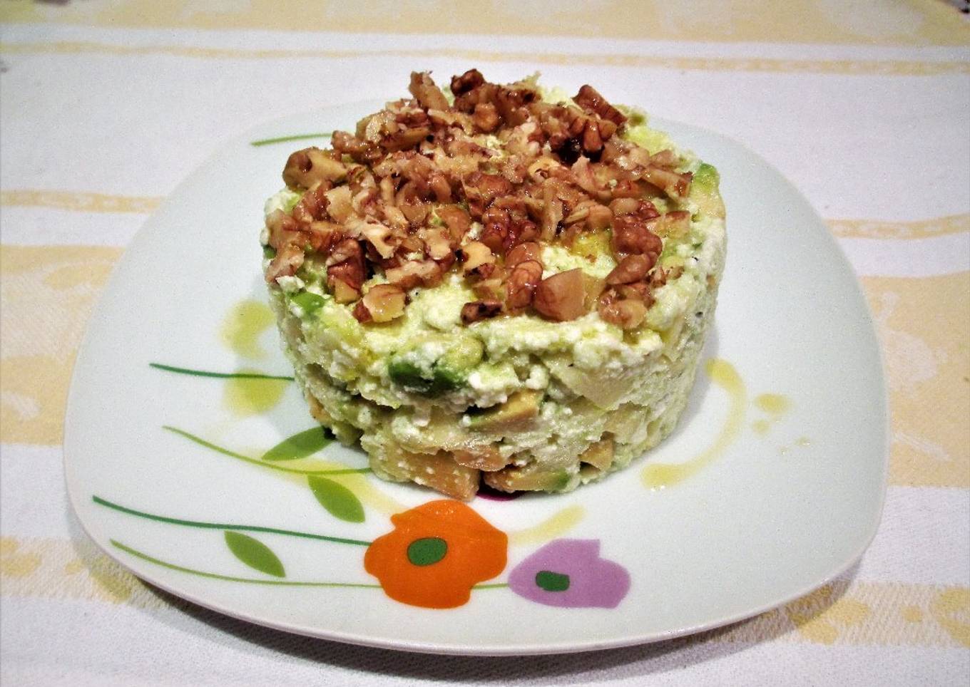 - Con un aro de cocina, reparte la mezcla en dos platos. Esparcir las nueces picadas por encima y añadir unas gotas más de aceite de oliva virgen extra. Aproveche!!!!!!