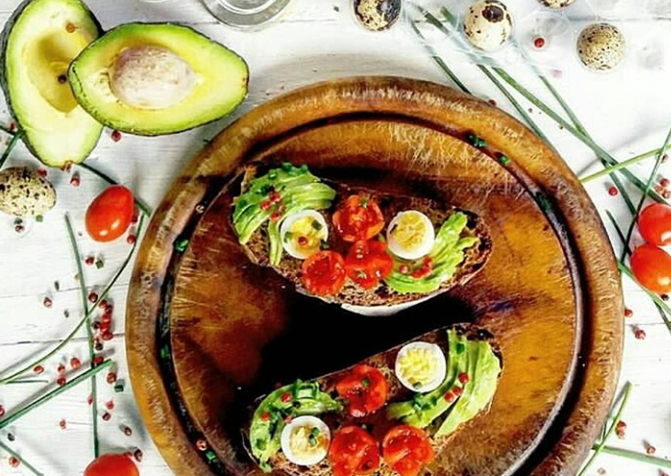 - Montamos las tostadas: Sobre las rebanadas colocamos el aguacate, tomates cherry por la mitad, los huevos de codorniz y regamos con la vinagreta. espolvoreamos con pimienta rosa.