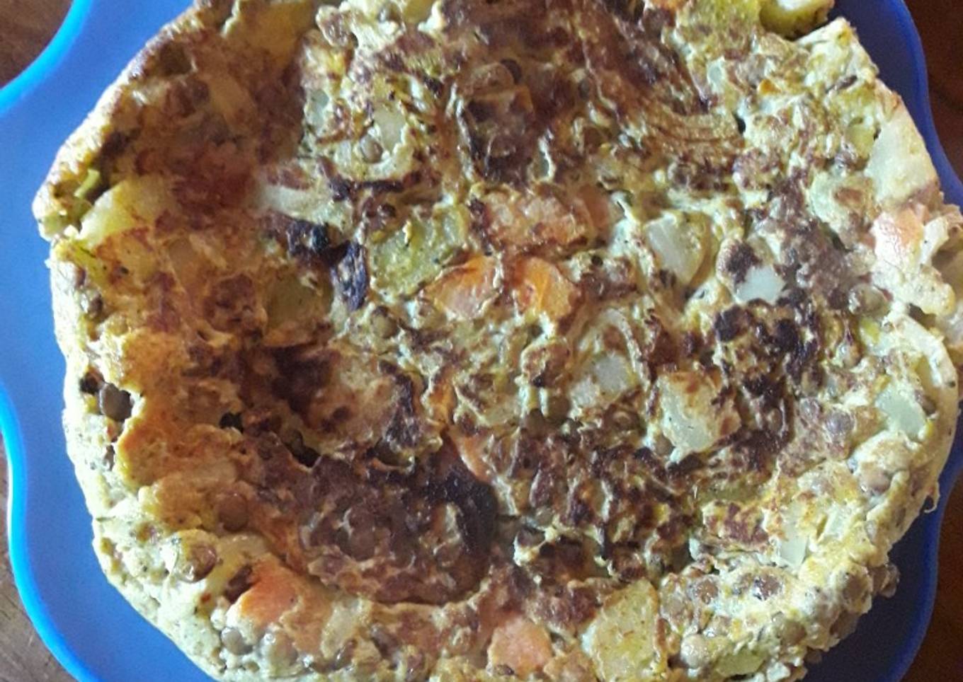Me sobró verduras hervidas del día anterior, (papas, zanahorias, batatas) lentejas cocidas, tenía huevos y cebolla, Y se me ocurrió hacer una tortilla! La verdad me salvó el almuerzo y no se tiró nada😊🤲