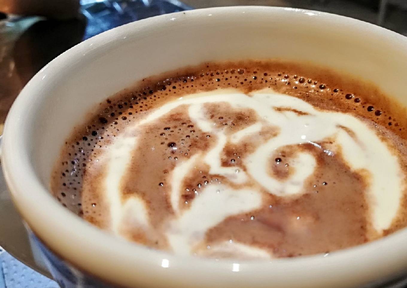 - Disolver las tabletas de chocolate en 1/2 taza de leche, mezclando vigorosamente. Al disolverse, añadir el resto de leche, continuar mezclando, incorporar la canela en polvo, el polvo para capuchino, el azúcar y continuar cocción hasta el punto que vaya a comenzar a hervir, sin dejarlo hervir. Servir inmediatamente en las tazas e incorporar la crema de leche a cada taza. Disfrutarlo bien caliente con un par de pancitos de leche de la panadería PanaJunior, los espero en casa...! A que sí...!😋😋