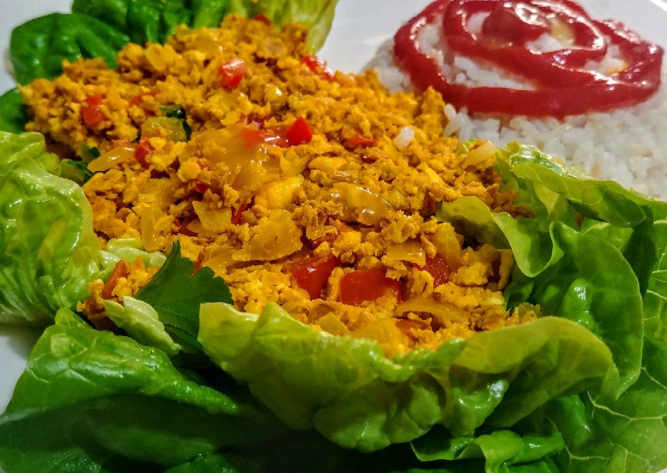 - Cortar los vegetales en cuadritos, el ajo en láminas, sellarlos en el aceite de oliva, añadir las especias, la sal, mezclar bien, agregar el atún escurrido, incorporar bien. Cascar los huevos...