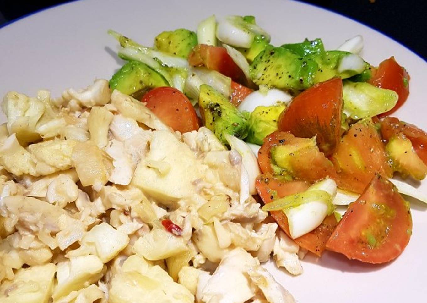 Tenía la mitad de una lubina en el congelador y ayer hice este salteado que nos encantó. Primero porque estaba muy sabroso y segundo porque después de unos días de disfrutar comiendo demasiado en Portugal, necesitaba algo bajo en hidratos. Aquí comparto la receta. Lo acompañé con una ensalada, aguacate y cebolla tierna.